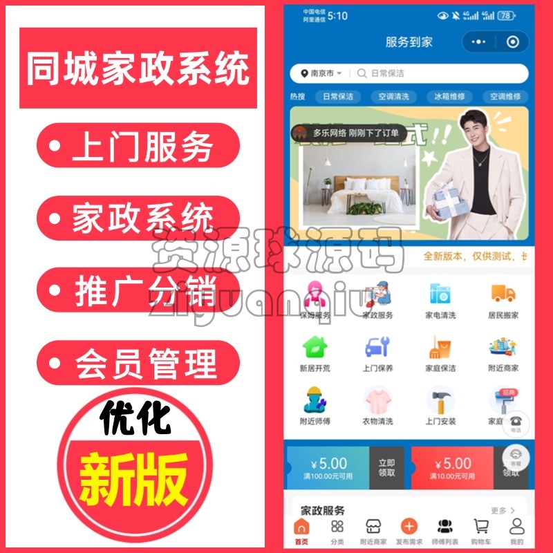 家政服务小程序维修傅上门服务保洁美容美甲上门预约在线派单技师陪诊跑腿家政上门预约 精品源码 同城上门服务系统 服务入驻,代理功能,维修服务,会员功能,推广功能,订单功能等等 免责声明:本站所提供的资源和内容部分来源于互联网及网友投稿,仅供学习和研究,请勿用于非法商业用途!如产生的任何法律纠纷与违法行为与本站无关!如有侵权请联系我们处理,敬请谅解! 购买产品的客户请勿涉黄或其他违反国家法律的用途上,如有客户不遵守国家法律产生相关法律问题与本站无关,我们不接触一切违反国家法律的技术支持工作,使用产品后请正确正规经营程序! 上门系统家政系统