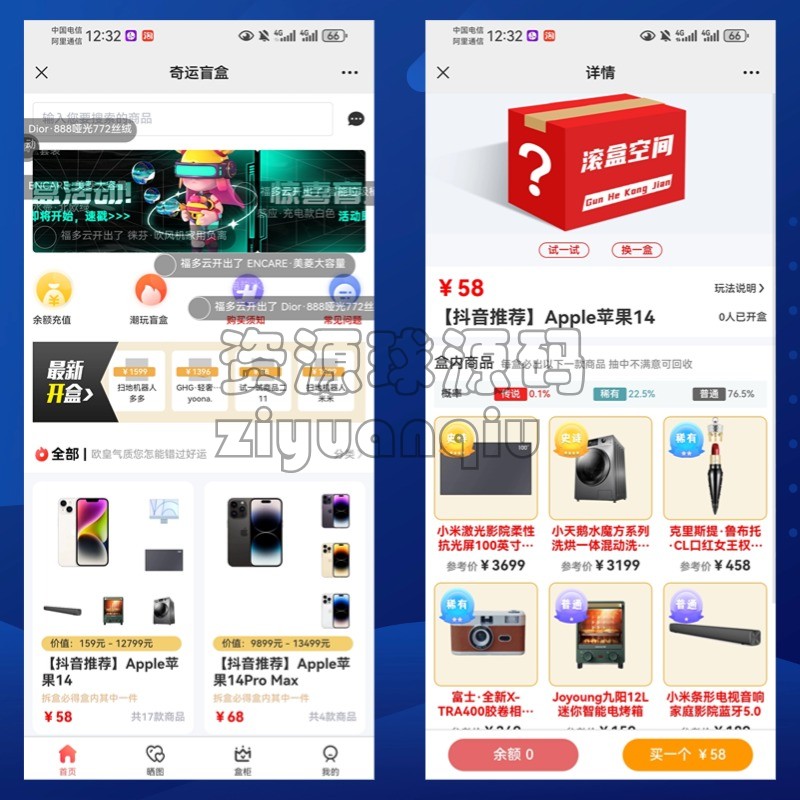 滚动盲盒H5程序盲盒商城系统盲盒H5可封装app盲盒源码 精品源码 免责声明:本站所提供的资源和内容部分来源于互联网及网友投稿,仅供学习和研究,请勿用于非法商业用途!如产生的任何法律纠纷与违法行为与本站无关!如有侵权请联系我们处理,敬请谅解! 购买产品的客户请勿涉黄或其他违反国家法律的用途上,如有客户不遵守国家法律产生相关法律问题与本站无关,我们不接触一切违反国家法律的技术支持工作,使用产品后请正确正规经营程序! 盲盒商城盲盒系统
