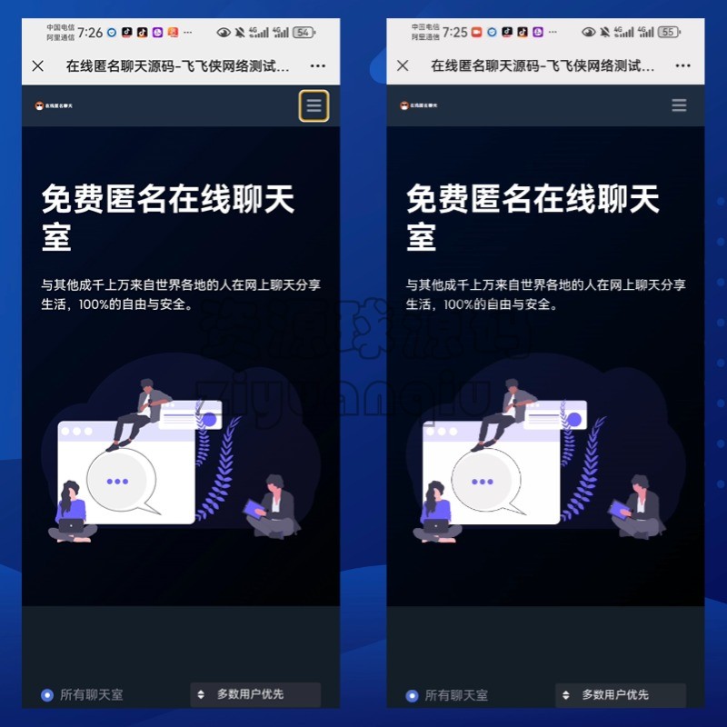 在线匿名聊天室网页在线匿名聊天系统 精品源码 在线匿名聊天室网页在线匿名聊天系统 免责声明:本站所提供的资源和内容部分来源于互联网及网友投稿,仅供学习和研究,请勿用于非法商业用途!如产生的任何法律纠纷与违法行为与本站无关!如有侵权请联系我们处理,敬请谅解! 购买产品的客户请勿涉黄或其他违反国家法律的用途上,如有客户不遵守国家法律产生相关法律问题与本站无关,我们不接触一切违反国家法律的技术支持工作,使用产品后请正确正规经营程序! 匿名聊天室