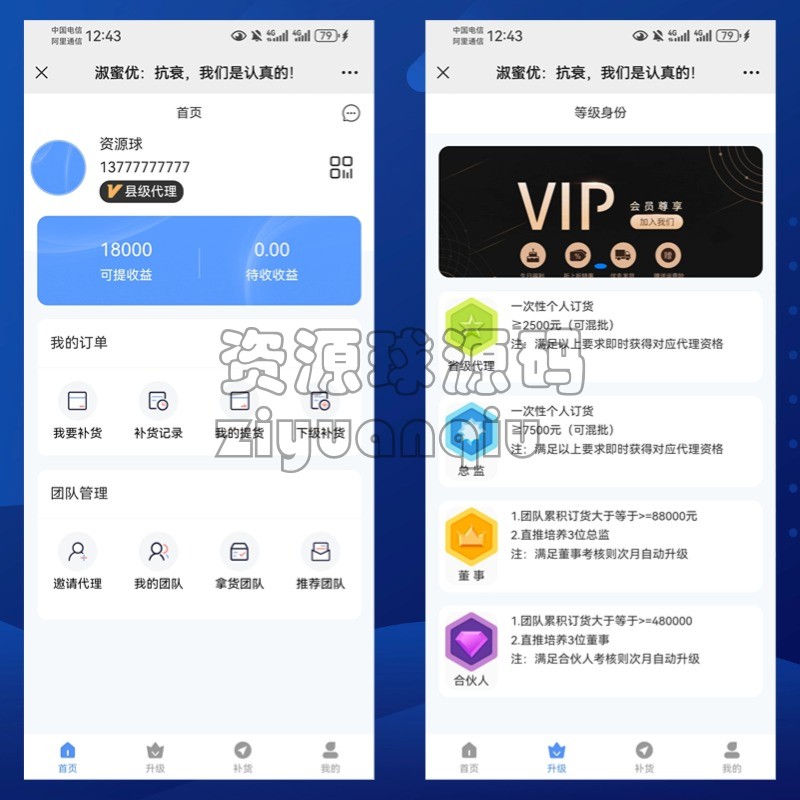 微商分销代理系统多级下线拿货返利团队订货程序 精品源码 免责声明:本站所提供的资源和内容部分来源于互联网及网友投稿,仅供学习和研究,请勿用于非法商业用途!如产生的任何法律纠纷与违法行为与本站无关!如有侵权请联系我们处理,敬请谅解! 购买产品的客户请勿涉黄或其他违反国家法律的用途上,如有客户不遵守国家法律产生相关法律问题与本站无关,我们不接触一切违反国家法律的技术支持工作,使用产品后请正确正规经营程序! 分销代理系统微商系统