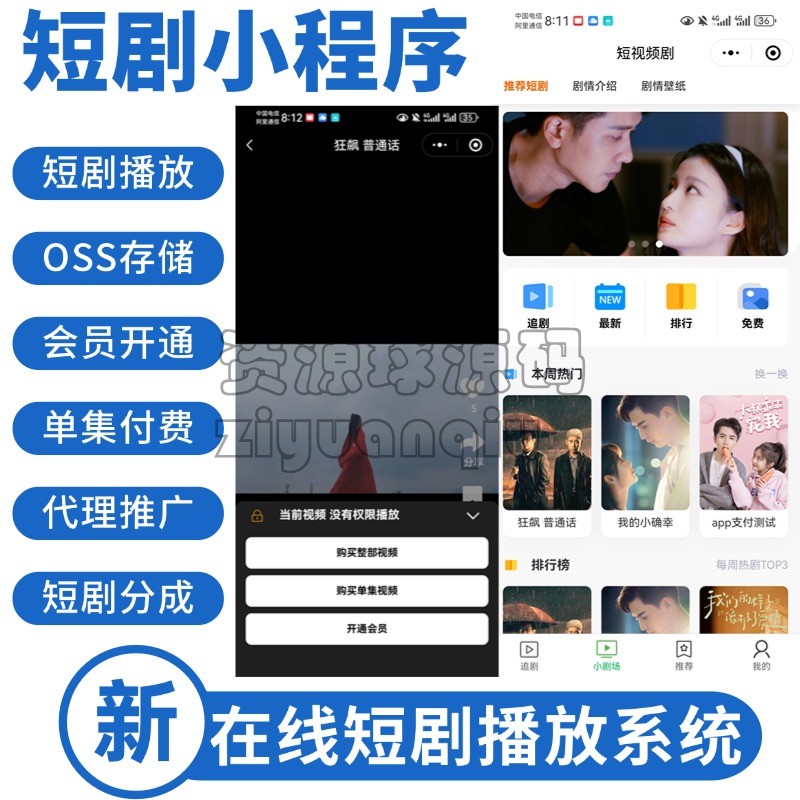 内容展现(短剧视频采用主流展现形式付费、免费、任务等方式解锁自由配置,)