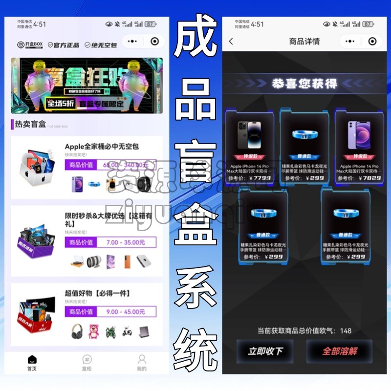 盲盒商城小程序系统在线盲盒商城潮玩盲盒会员分销代理盲盒源码 精品源码 功能介绍: 在线盲盒商城,在线回收,多抽连抽,代理功能,概率调整,会员管理,分销功能。 免责声明:本站所提供的资源和内容部分来源于互联网及网友投稿,仅供学习和研究,请勿用于非法商业用途!如产生的任何法律纠纷与违法行为与本站无关!如有侵权请联系我们处理,敬请谅解! 购买产品的客户请勿涉黄或其他违反国家法律的用途上,如有客户不遵守国家法律产生相关法律问题与本站无关,我们不接触一切违反国家法律的技术支持工作,使用产品后请正确正规经营程序! 盲盒系统