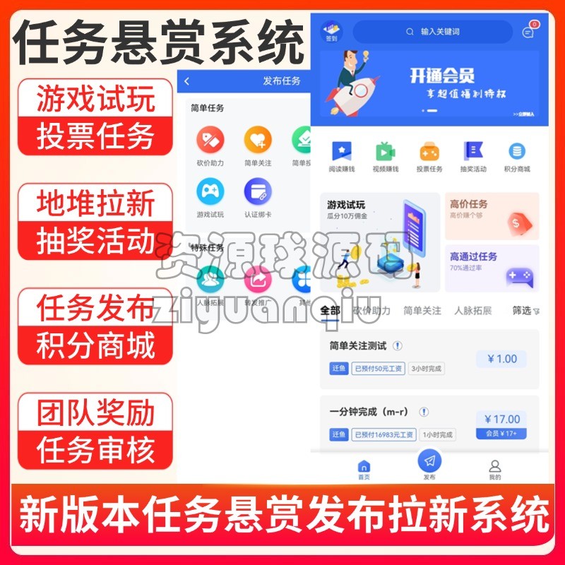 众人帮悬赏任务系统威客兼职游戏试玩赏金任务地堆拉新程序 精品源码 功能介绍:新增支持奖品活动,积分商城,会员信用分,积分签到,用户可发布管理任务,功能非常丰富,另外预留了联盟接口,可以自行对接或者二开。 免责声明:本站所提供的资源和内容部分来源于互联网及网友投稿,仅供学习和研究,请勿用于非法商业用途!如产生的任何法律纠纷与违法行为与本站无关!如有侵权请联系我们处理,敬请谅解! 购买产品的客户请勿涉黄或其他违反国家法律的用途上,如有客户不遵守国家法律产生相关法律问题与本站无关,我们不接触一切违反国家法律的技术支持工作,使用产品后请正确正规经营程序! 任务系统悬赏任务